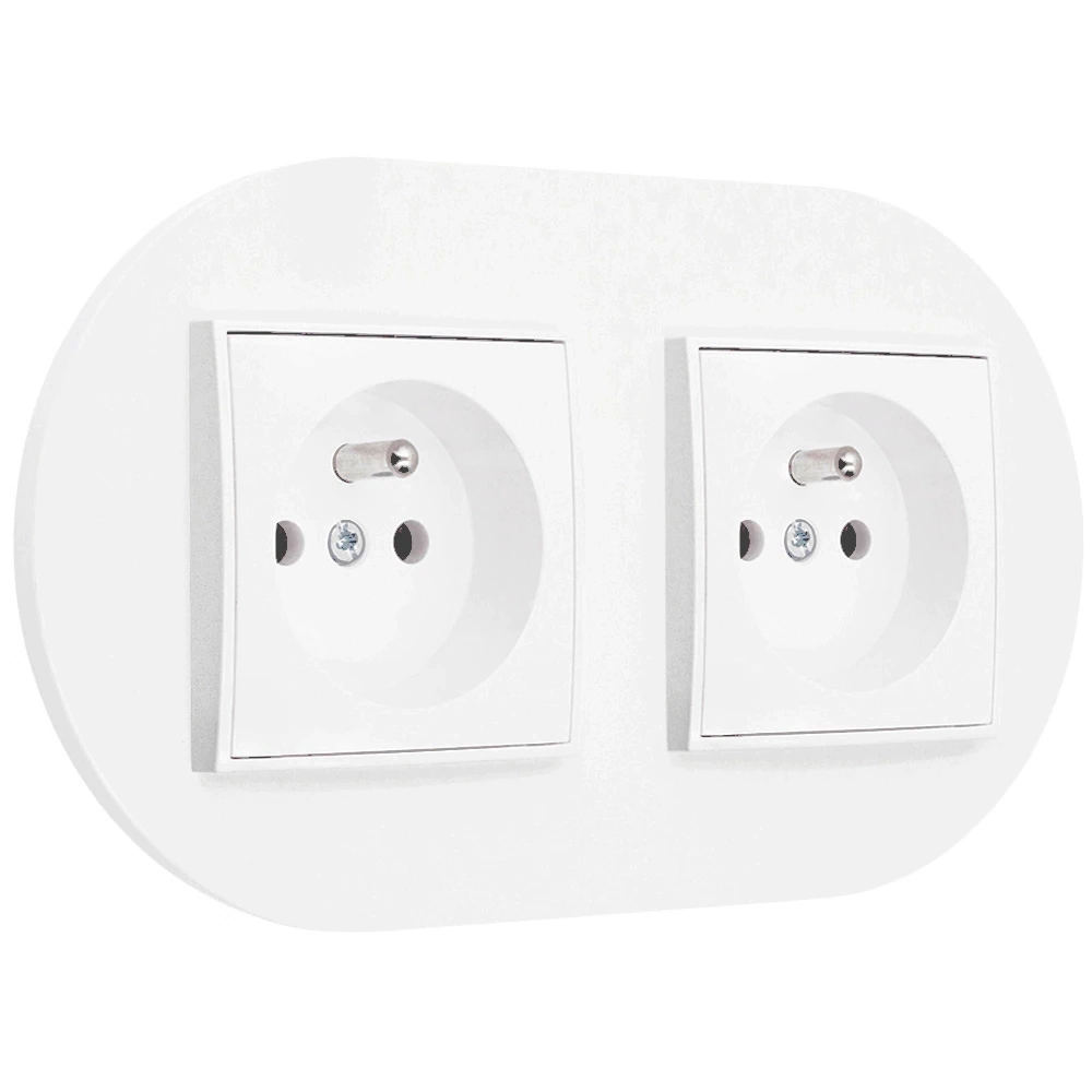 Zestaw produktów o kodzie 56693392 Dwa gniazda pojedyncze z ramką okrągłą seria MINI kolor biały mat składający się z następujących produktów: