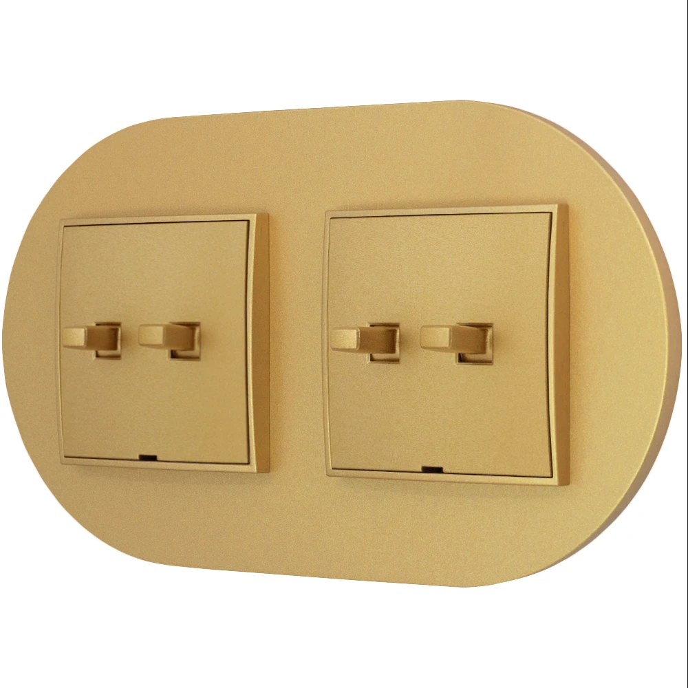 Dwa włączniki podwójne w stylu USA ramka okrągła seria Mini kolor złoty