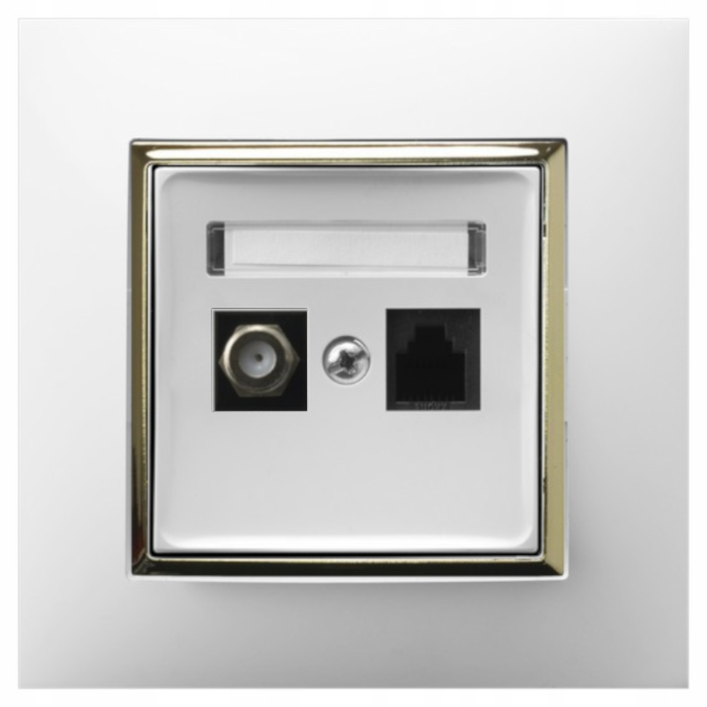 Gniazdo RJ45/TV(F) z ramką Aria Biały/Złoto