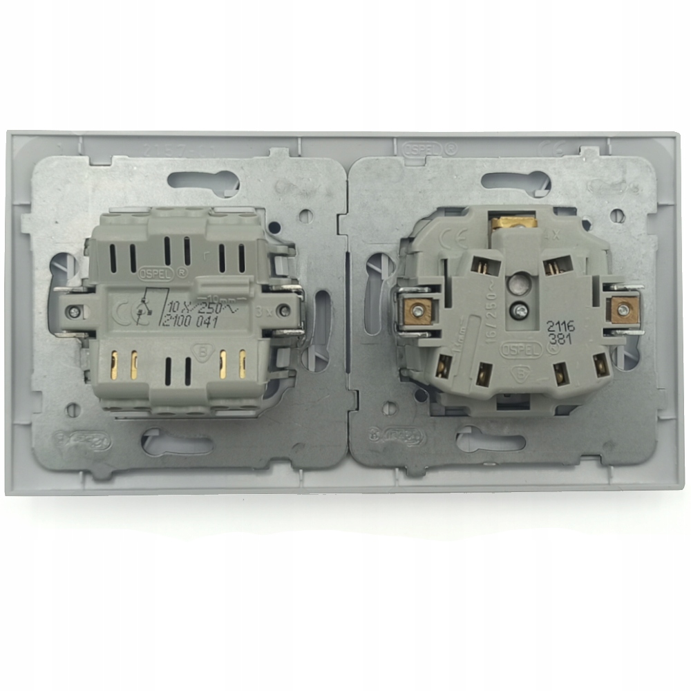ZESTAW ŁAZIENKOWY WŁĄCZNIK POJEDYNCZY I GNIAZDO HERMETYCZNE W RAMCE W KOLOŻE BIAŁYM. MONTOWANE W PODWÓJNEJ PUSZCE FI 60. GNIAZDO POSIADA ZACISKI ŚRUBOWE A WŁĄCZNIK ZACISKI SZYBKIEGO MONTAŻU. GNIAZDA MONTOWANE ZA POMOCĄ PAZURKÓW LUB ŚRÓBEK Z PUSZKI MONTAŻOWEJ. POLSKI PRODUCENT OSPEL SERIA ARIA.