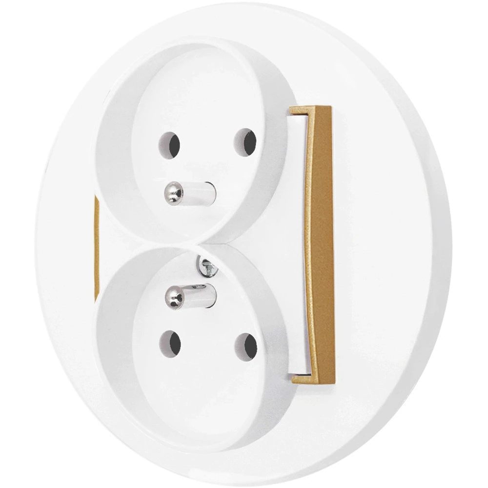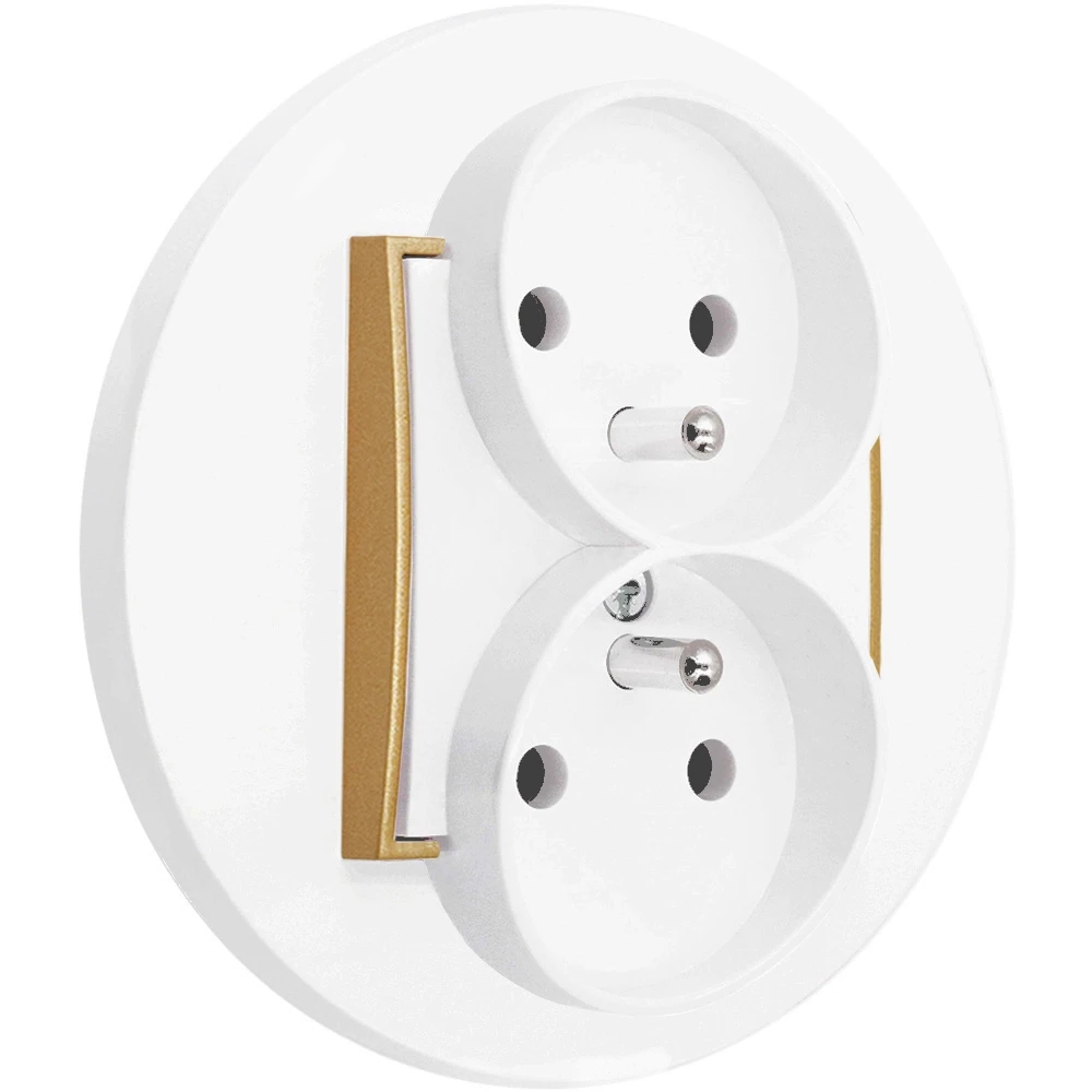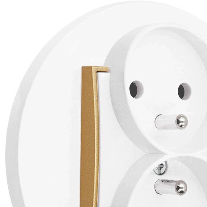 Gniazdo podwójne z ramką okrągłą seria MINI kolor biały mat/złoty