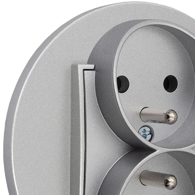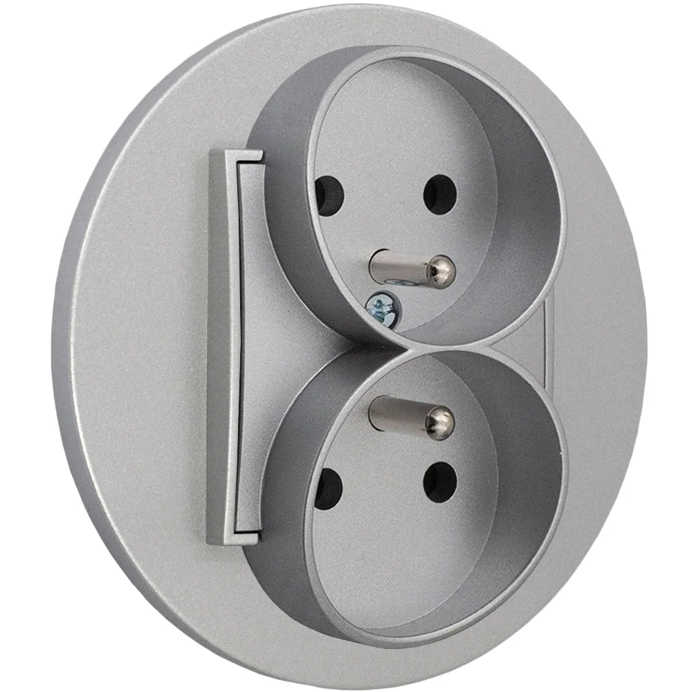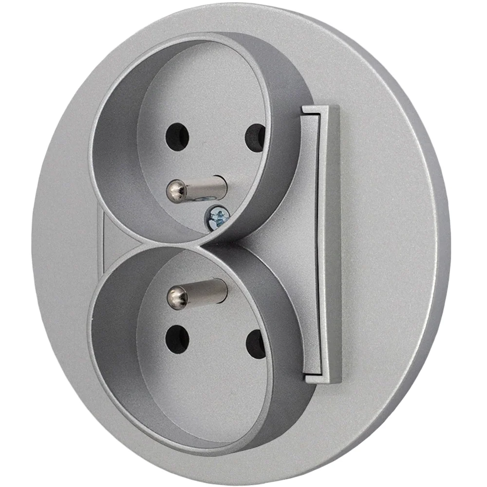 Gniazdo podwójne z ramką okrągłą seria MINI kolor srebrny
