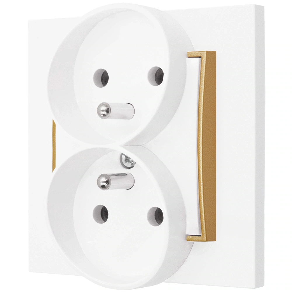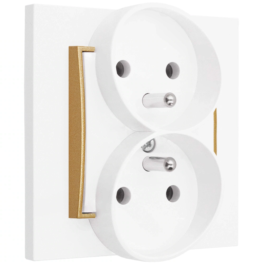 Gniazdo podwójne z ramką prostą seria MINI kolor biały mat/złoty