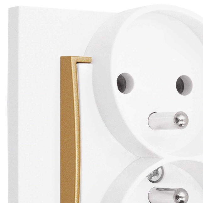 Seria włączników i gniazd Karlik MINI w kolorze biały mat z ramką pośrednią złotą to elegancka i nowoczesna propozycja do wnętrz. Produkty wyróżniają się wysokiej jakości włoskim lakierem, który nadaje im ekskluzywny wygląd i trwałość. Występują w trzech kształtach – okrągłym, zaokrąglonym i kwadratowym, co pozwala na dopasowanie do różnych stylów aranżacyjnych. Dzięki precyzyjnemu wykonaniu i stylowej kolorystyce, kolekcja łączy funkcjonalność z estetyką, doskonale komponując się zarówno w klasycznych, jak i nowoczesnych wnętrzach.
