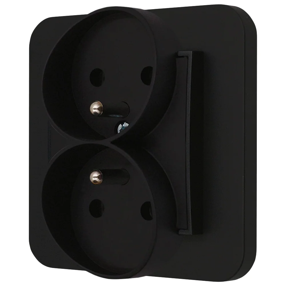 Gniazdo podwójne z ramką zaokrągloną seria MINI kolor czarny