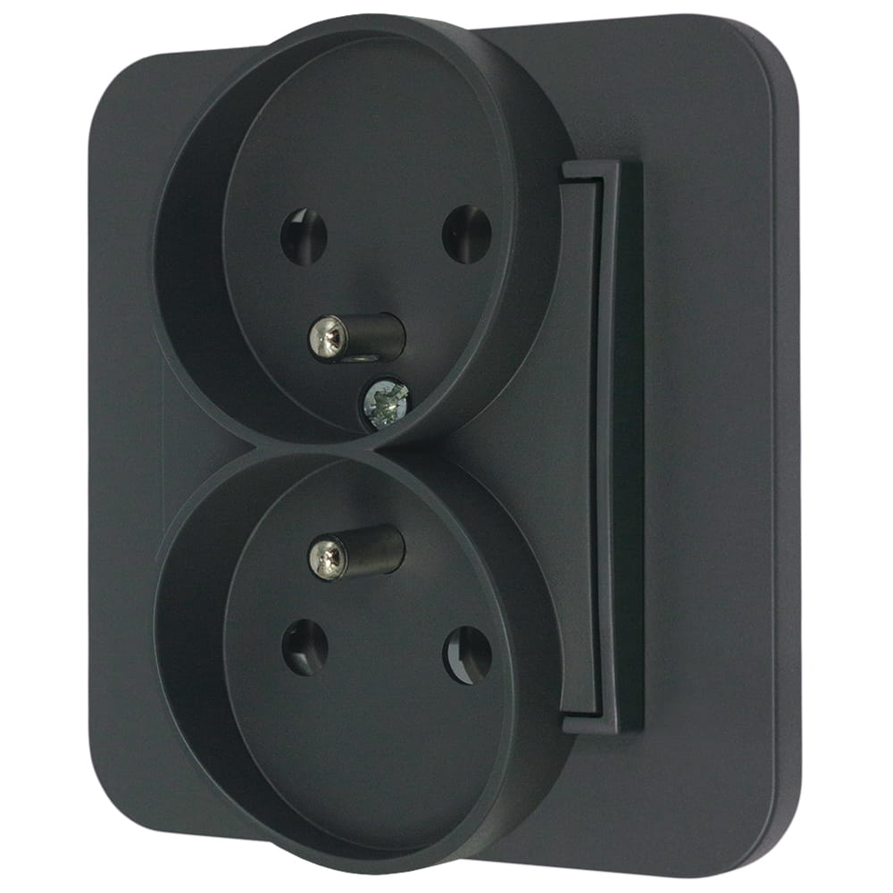 Zestaw produktów o kodzie 53244510 Gniazdo podwójne z ramką zaokrągloną seria MINI kolor grafitowy mat składający się z następujących produktów:
