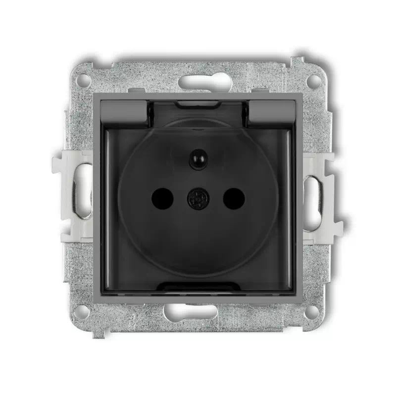 Icon Mechanizm Gniazda Bryzgoszczelnego Z Uziemieniem 2P+Z (Klapka Dymna, Przesłony Torów Prądowych) Szary Mat 27Igpb-1Zdp