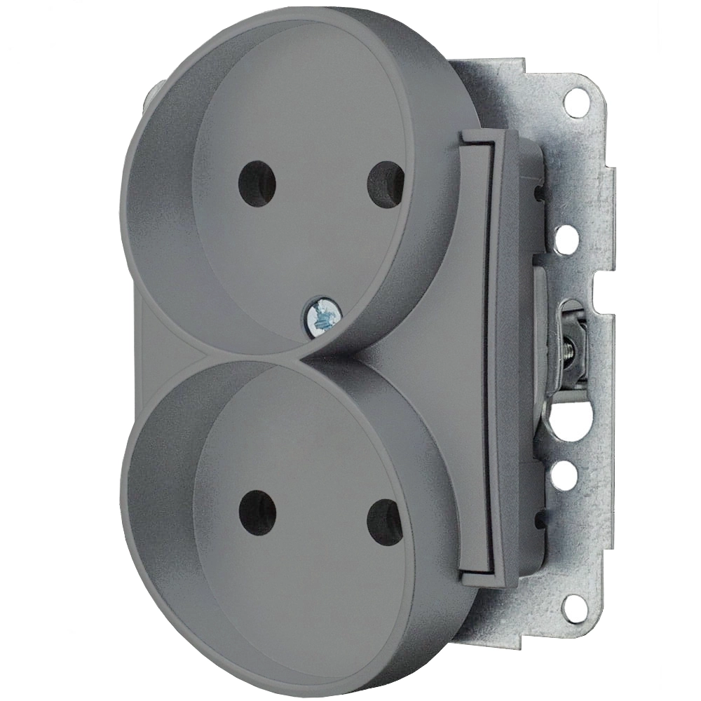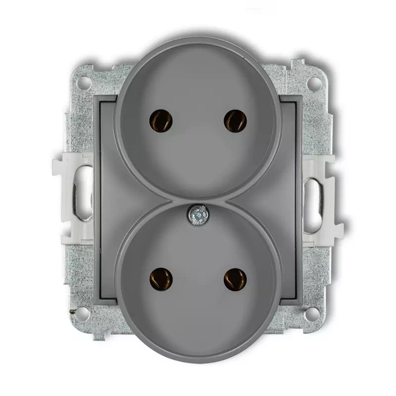 Icon Mechanizm Gniazda Podwójnego Do Ramki Bez Uziemienia 2X2P (Bez Przesłon Torów Prądowych) Szary Mat 27Igpr-2