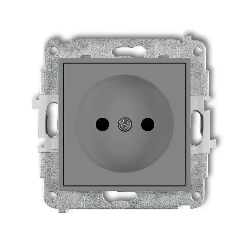 Icon Mechanizm Gniazda Pojedynczego Bez Uziemienia 2P (Przesłony Torów Prądowych) Szary Mat 27Igp-1P