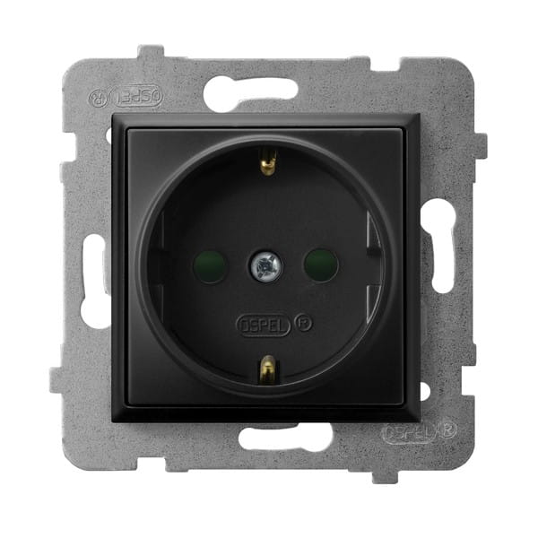 Ospel Aria Gniazdo Pojedyncze Z Uziemieniem Schuko Z Przesłonami Torów Prądowych Czarny
