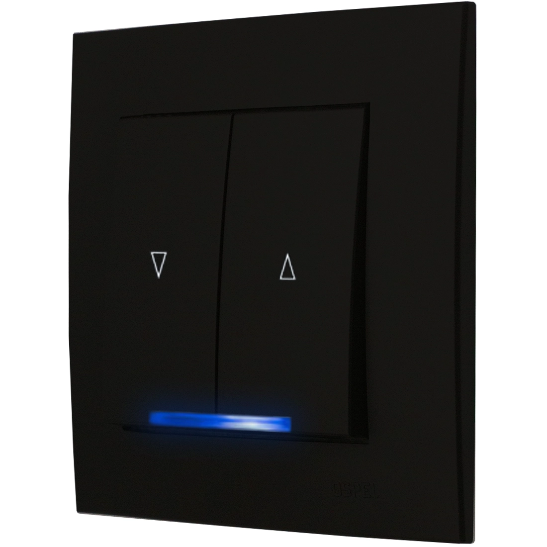 Ospel Szafir Czarny Łącznik Roletowy Z Blokadą Podświetlenie Niebieskie Zestaw Z Ramką