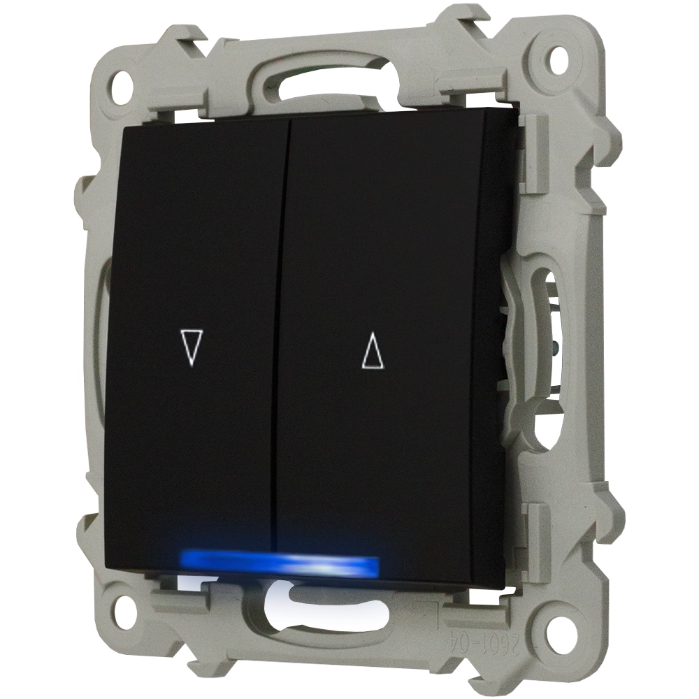 Łącznik żaluzjowy z blokadą z serii Szafir w kolorze Czarnym Metalik jest przeznaczony do montażu podtynkowego, pazurkowego lub śrubowego. Wykonanie z wysokiej jakości tworzywa sztucznego i metalu z lakierowaną powierzchnią zapewnia elegancję oraz trwałość. Niebieskie podświetlenie klawiszy nie tylko ułatwia użytkowanie w ciemności, ale także dodaje nowoczesnego charakteru. Blokada mechaniczna zwiększa bezpieczeństwo użytkowania, zapobiegając niechcianemu uruchomieniu żaluzji.