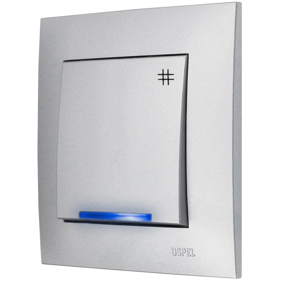 Ospel Szafir Srebrny Włącznik / Łącznik Krzyżowy Podświetlenie Niebieskie Zestaw Z Ramką