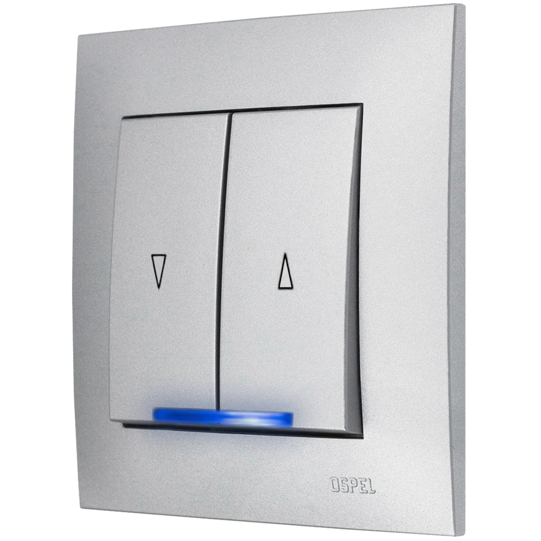 Ospel Szafir Srebrny Włącznik / Łącznik Roletowy Z Blokadą Podświetlenie Niebieskie Zestaw Z Ramką