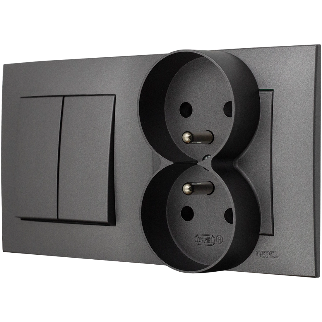 Praktyczne Zastosowania Ospel Szafir Szary mat łącznik podwójny z gniazdem podwójnym zestaw z ramką
