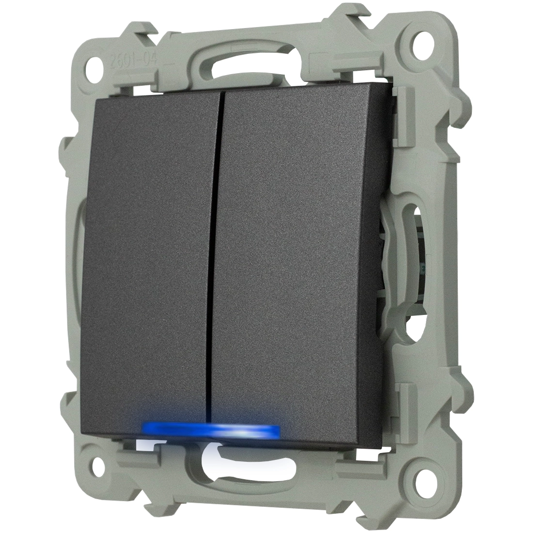 Ospel Szafir Włącznik Podwójny Zwierny Z Podświetleniem Niebieskim Szary Mat