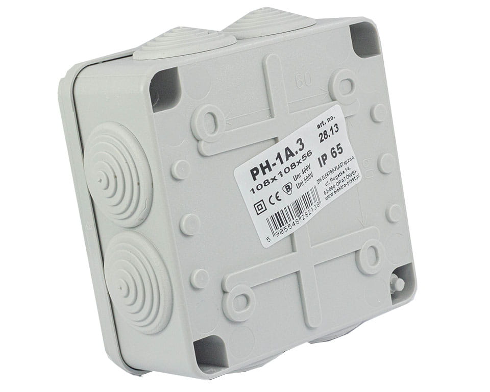 Puszka hermetyczna natynkowa 108x108x56mm IP44 szara PH‑1A.3 28.13