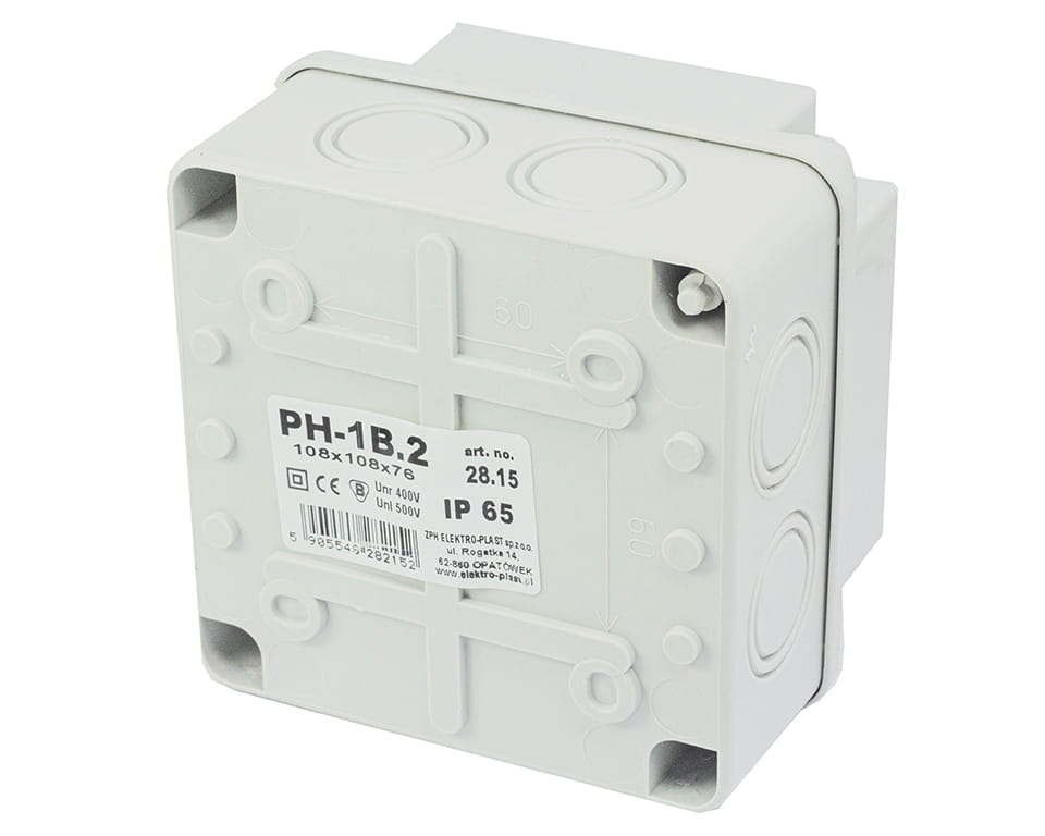 Puszka hermetyczna natynkowa 108x108x76mm IP44 szara PH‑1B.2 28.15