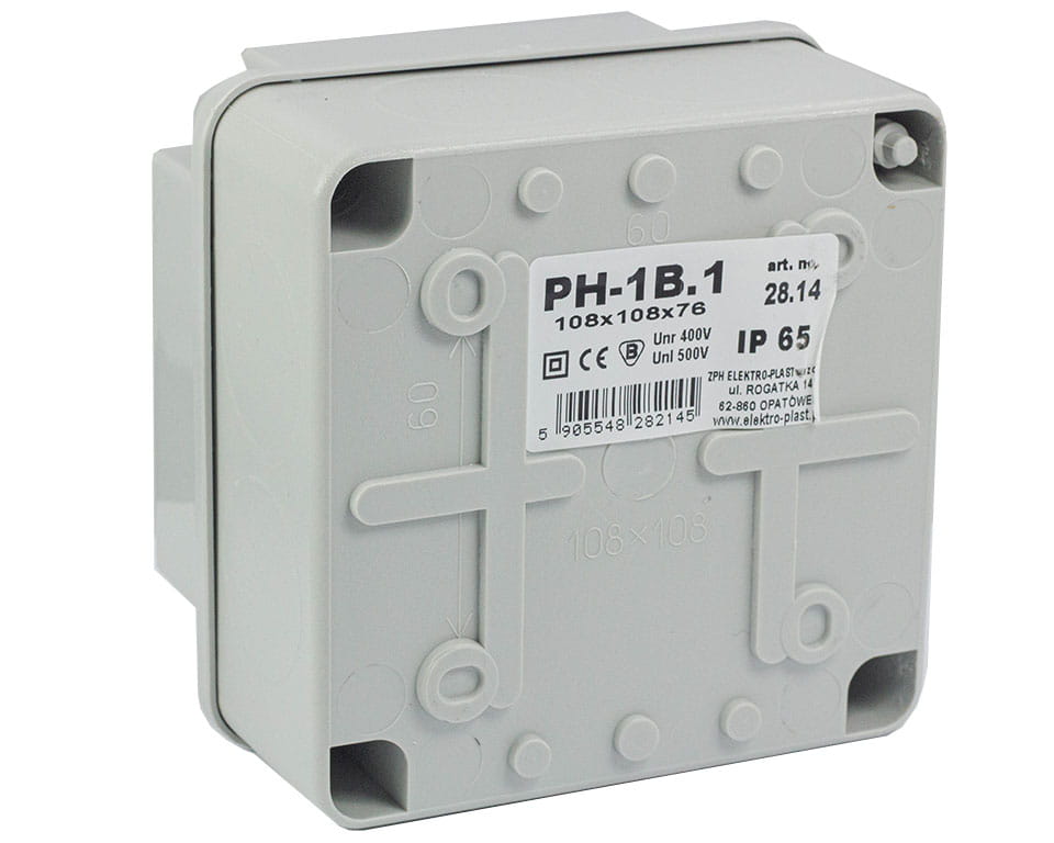 Puszka n/t hermetyczna pusta bez osłabień 108x108x76 IP65 szara PH‑1B.1 28.14
