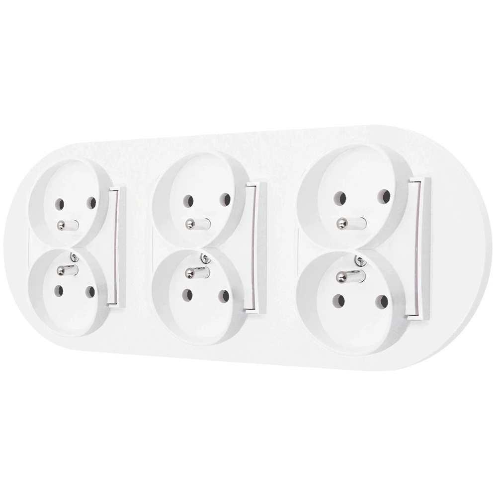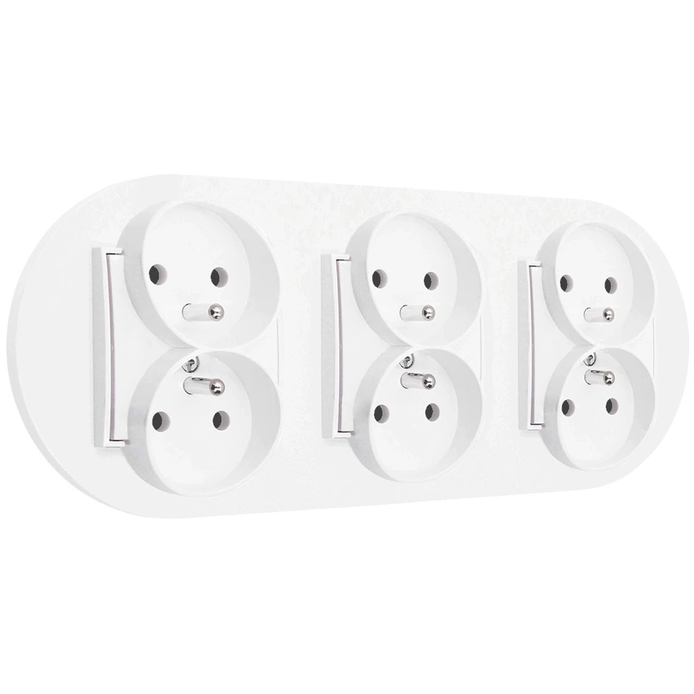 Trzy gniazda podwójne z ramką okrągłą seria MINI kolor biały mat