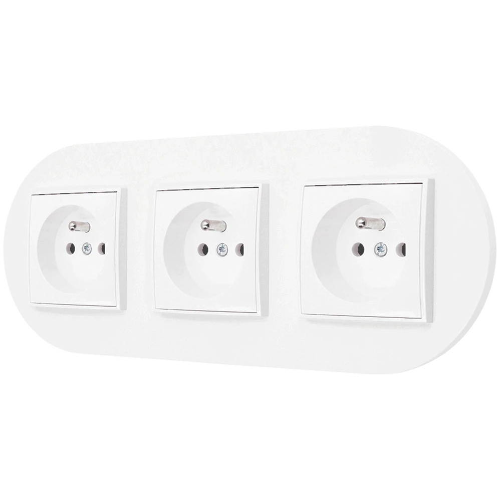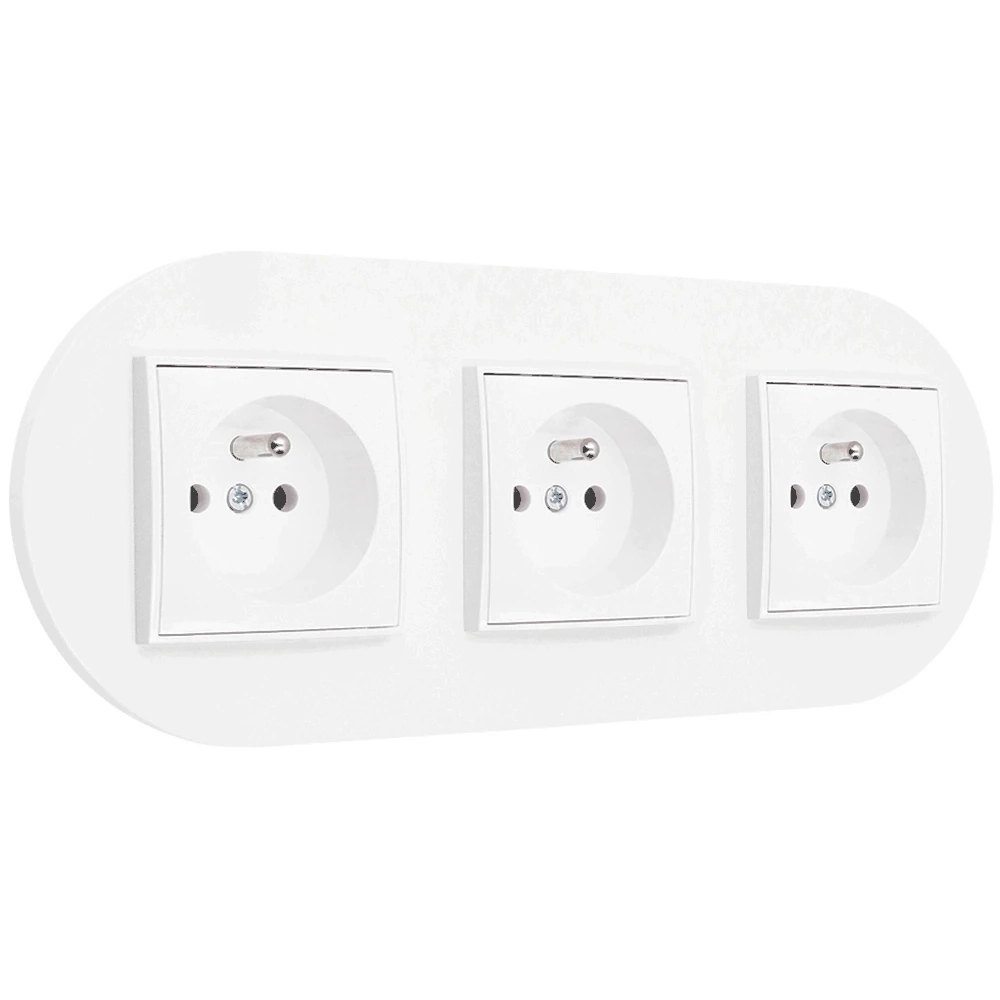 Zestaw produktów o kodzie 56693401 Trzy gniazda pojedyncze z ramką okrągłą seria MINI kolor biały mat składający się z następujących produktów: