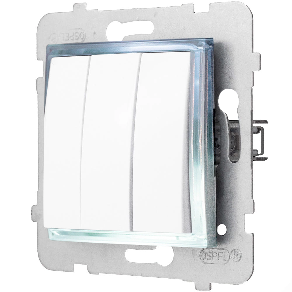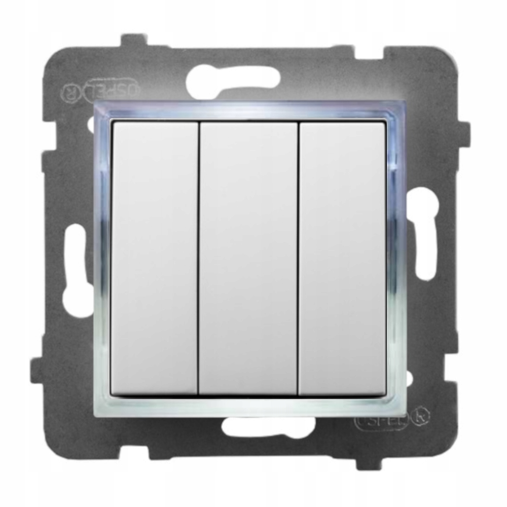Włącznik Biały Podświetlany Led Biały Potrójny Bez Ramki 00.B Ospel Aria