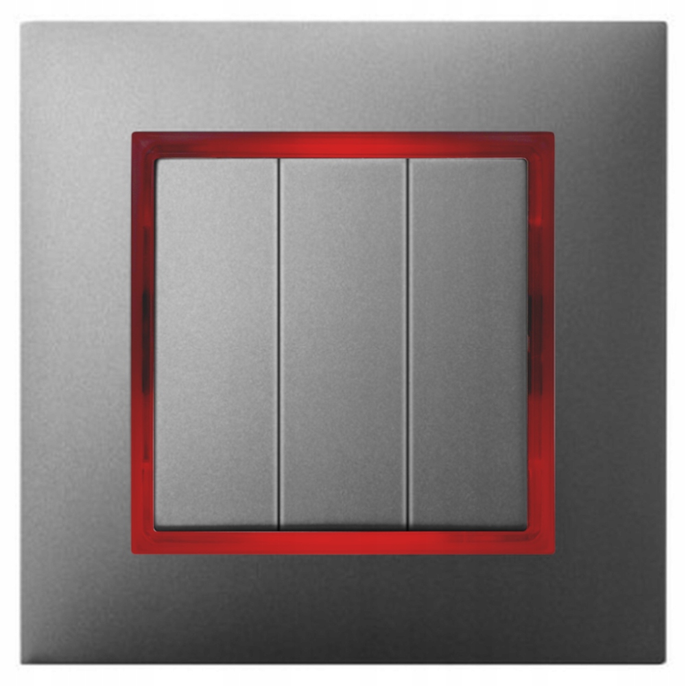 Włącznik Podświetlany Led Czerwony Potrójny Z Ramką 70.C Ospel Aria