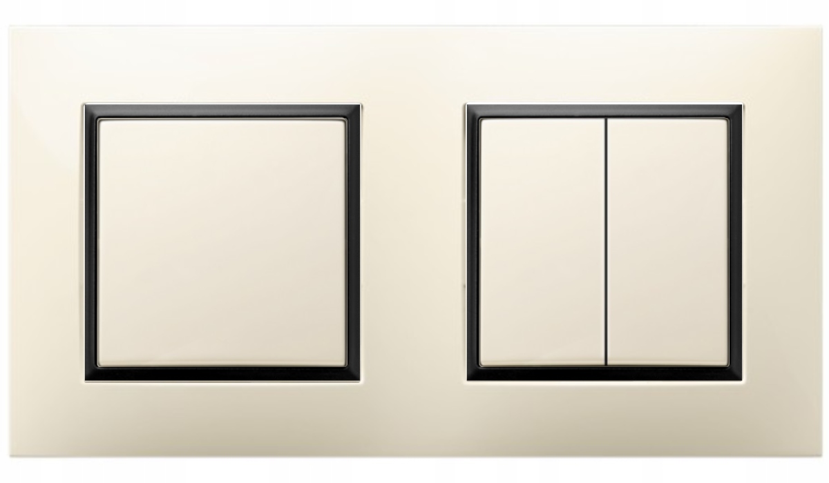 ZESTAW WŁĄCZNIKÓW W KOLOŻE ECRU Z RAMKĄ PODWÓJNĄ. MONTOWANE W STANDARDOWYCH PUSZKACH FI60 ŁĄCZONYCH.