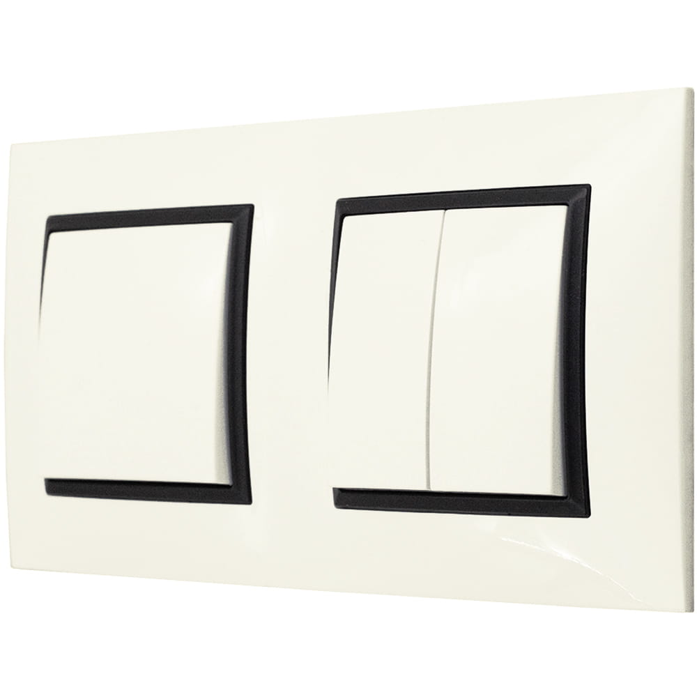 WŁĄCZNIK POJEDYNCZY I PODWÓJNY W RAMCE ECRU CZARNY