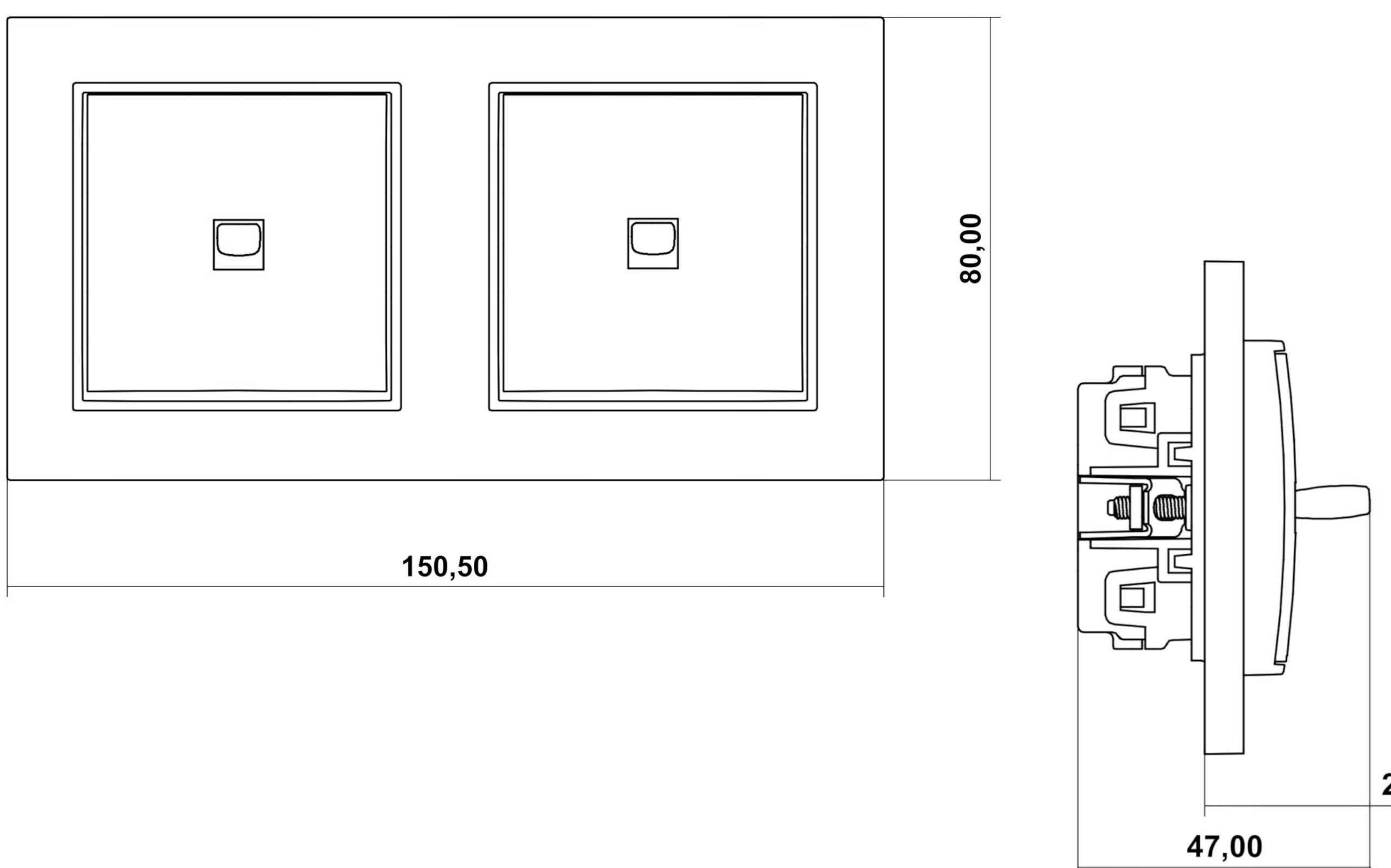 Montowany w standardowych puszkach podtynkowych podwójnych łączonych za pomocą wkrętów puszki montażowej lub skręcanych łapek. Produkt wysokiej jakości wyprodukowany w Polsce. Serię MINI wyróżnia nowoczesny wygląd.