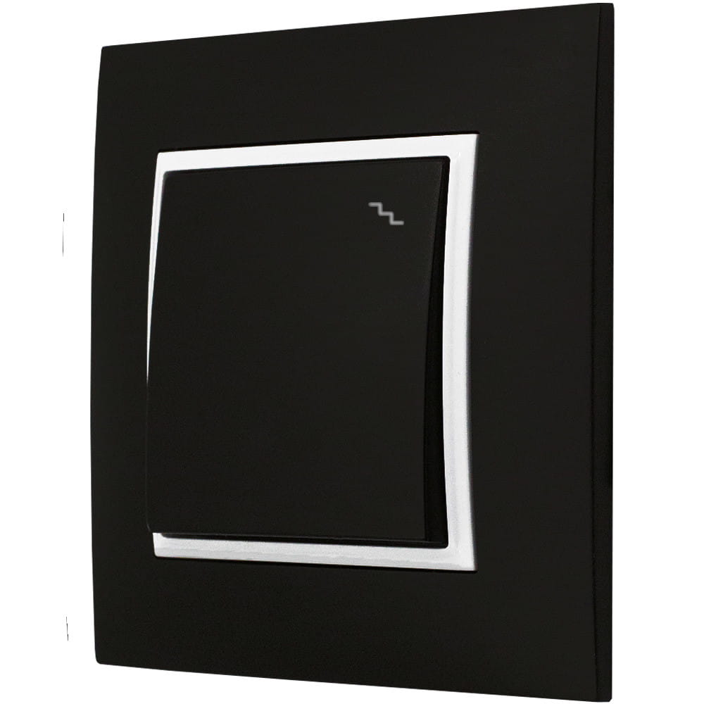 Włącznik Aria w kolorze czarnym z elementami w kolorze białym został zaprojektowany z myślą o łatwym i szybkim montażu. Można go zamontować podtynkowo za pomocą metalowych pazurków lub wkrętów montażowych puszki fi 60.