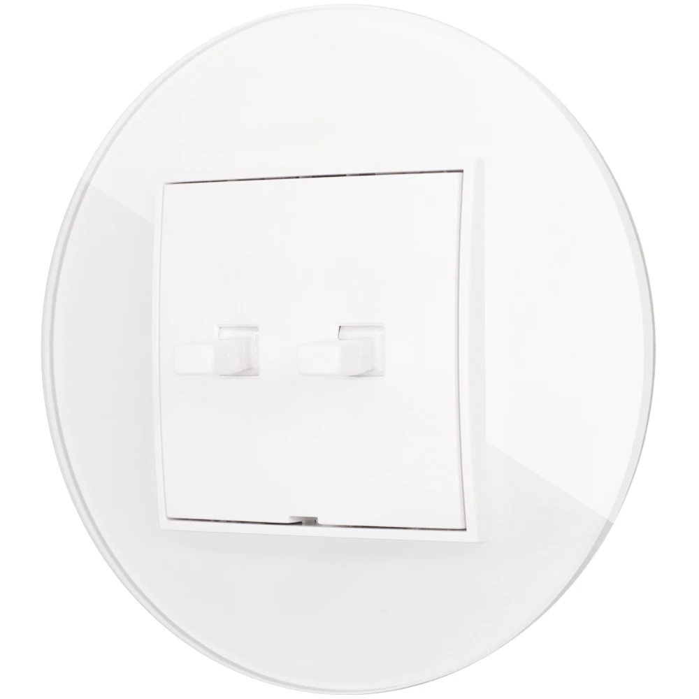 Zestaw produktów o kodzie 58954446 Włącznik podwójny w stylu USA ramka okrągła efekt szkła seria ICON kolor biały składający się z następujących produktów:
